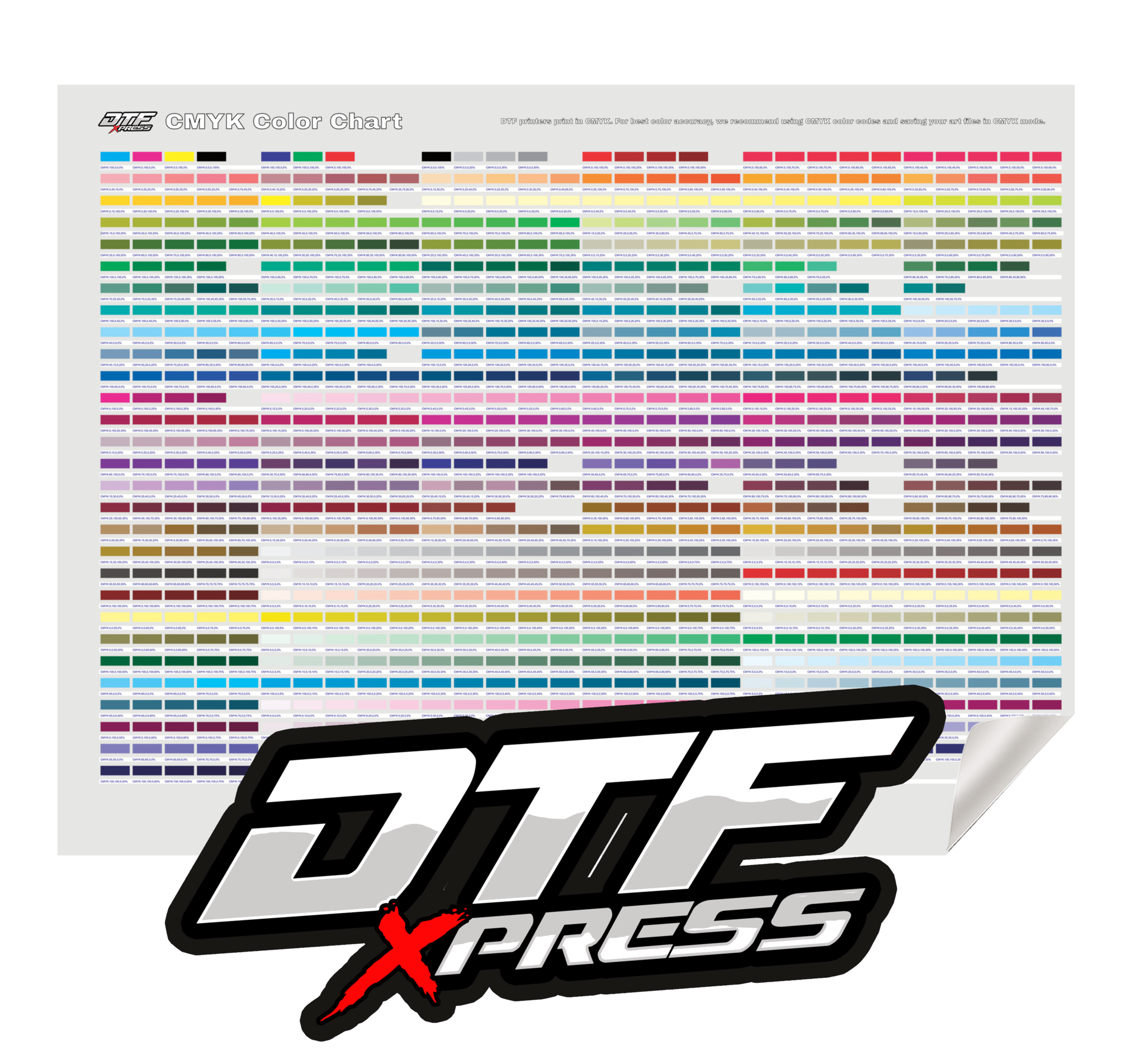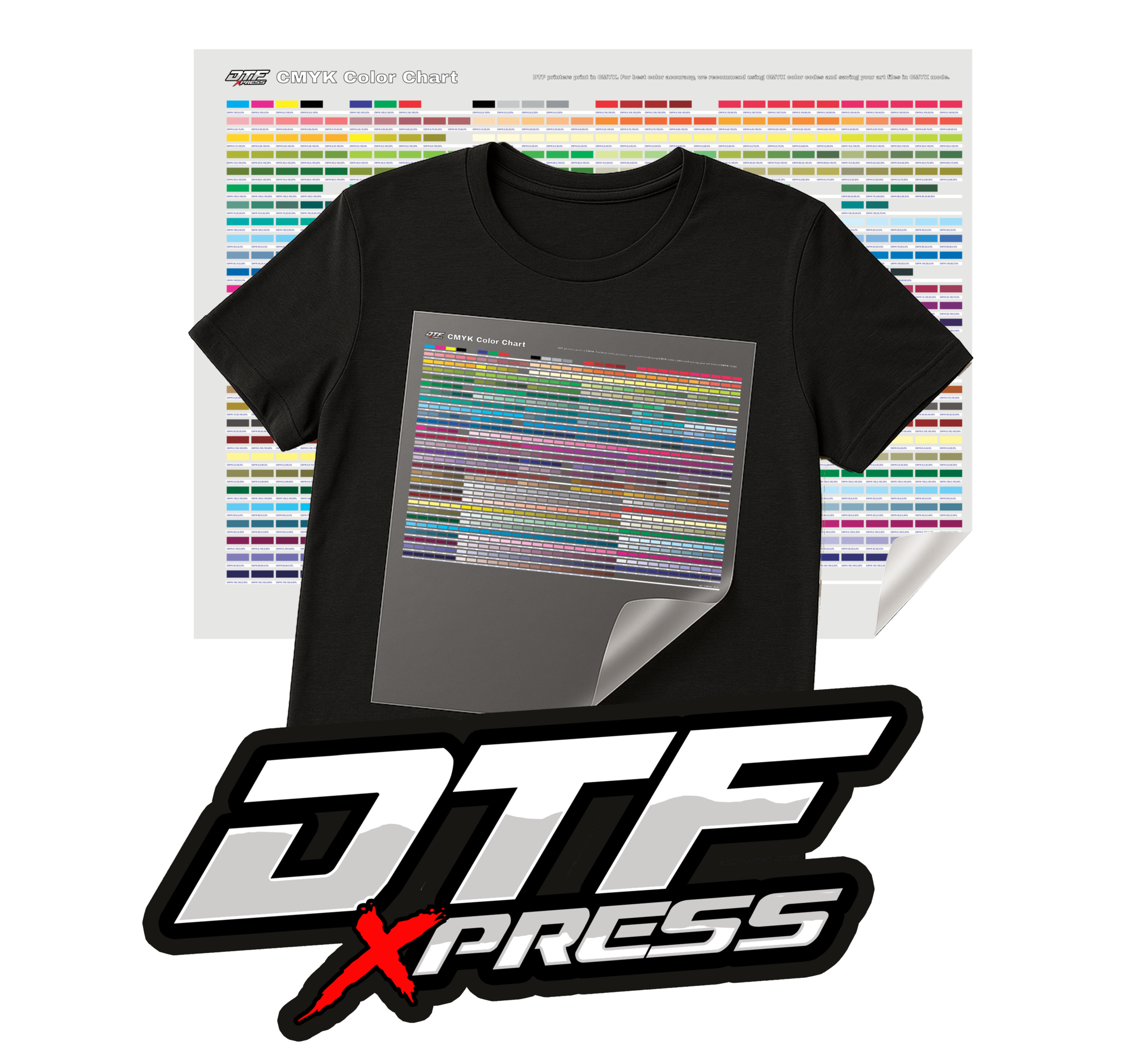 Screens display color in RGB (Red, Green, Blue), while DTF printing uses CMYK (Cyan, Magenta, Yellow, Black). Colors may appear more vibrant on a screen than they do when printed. The printed color chart gives a real-world reference to avoid surprises.